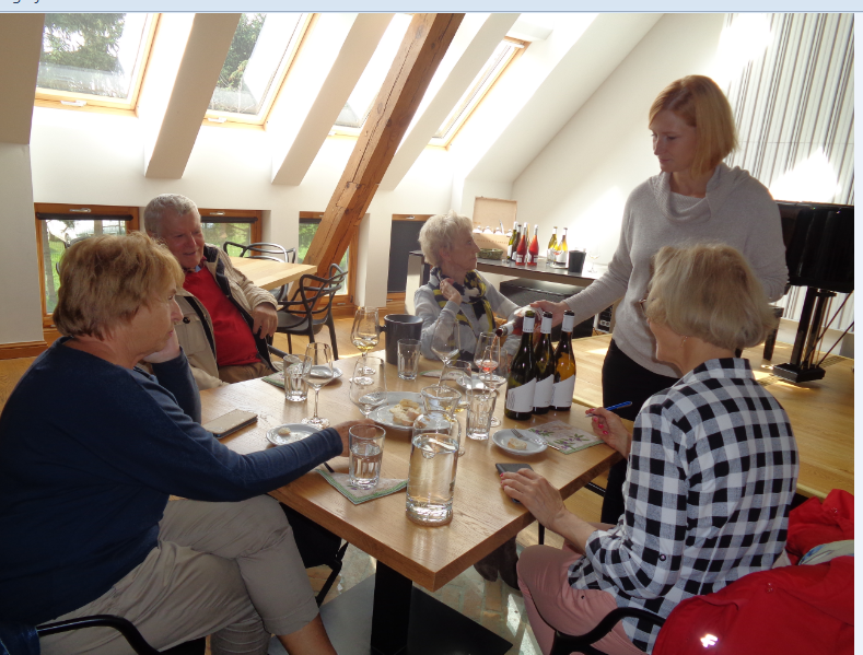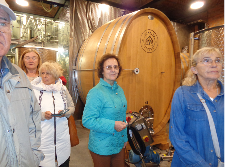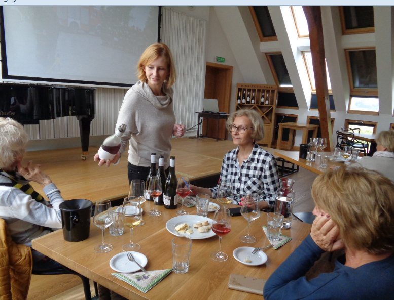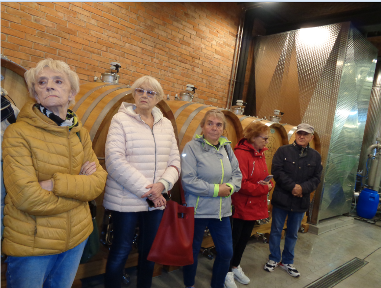 Podobało się nam słownictwo naszej przewodniczki, p. KATARZYNY KASICKIEJ, która o winie mówiła z prawdziwym znawstwem i uczuciem. Doszukiwała się w winie smaku delikatnego, orzeźwiającego, frywolnego, okazjonalnego, czuła smaki tropikalne oraz takie ,które nie przytłaczały aromatem, chwaliła te o wersji spokojnej, wspominała o zaletach win z bąbelkami. Zaopatrzeni w wino zakupione w firmowym sklepie, przy lampce wina, w domowym zaciszu,będziemy z rozrzewnieniem wracali do wycieczkowych wspomnień.