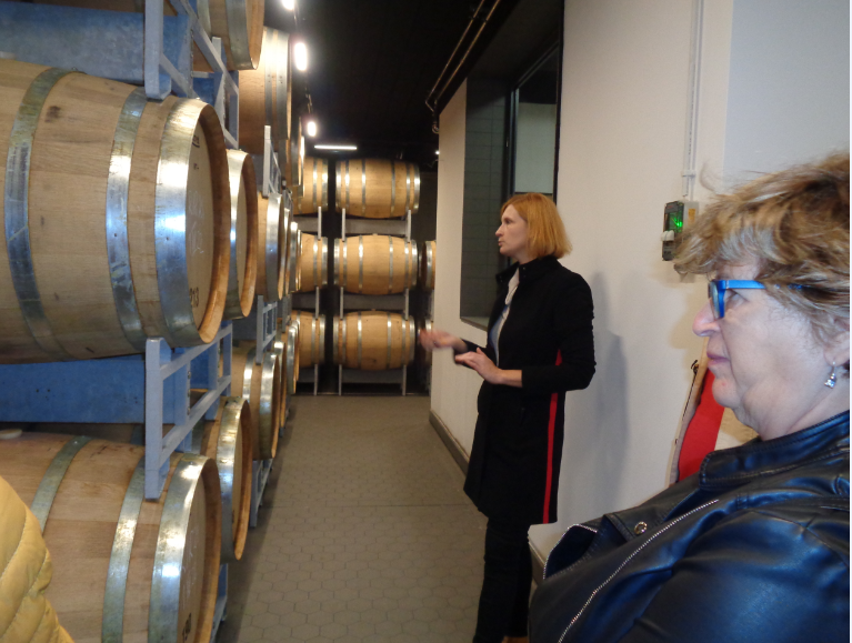 Proces technologiczny, własne laboratorium, etapy przetwórstwa, potrzebne do tego urządzenia, kadzie, beczki o różnych rozmiarach … to widzieliśmy na własne oczy. Wszędzie nowocześnie, czysto i elegancko. Przemyślany jest tu każdy detal. Nic dziwnego, że końcowy produkt – wino – zachwyca smakiem. Potwierdziła to degustacja, na którą zostaliśmy zaproszeni. Przegryzane regionalnymi serami 4 rodzaje win, których rynkowa premiera miała miejsce w 2015 roku, zachwycały smakiem . Są tu wina białe – o 8 smakach , jest wino pomarańczowe, różowe, 3 wina czerwone i 2 musujące. Dziesiątki tysięcy litrów szlachetnego płynu – zakorkowanego w butelkach lub zamkniętego zakrętkami ma od lat swoich wiernych nabywców.