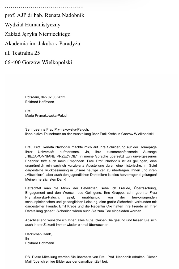 Wzruszają mnie ciepłe słowa kierowane pod moim adresem, choć ulotne – radują serce. Miłe listy wzruszają mnie jeszcze bardziej. Słowa zapisane, zostają na zawsze, można do nich wracać i w razie potrzeby, czerpać z nich energię.