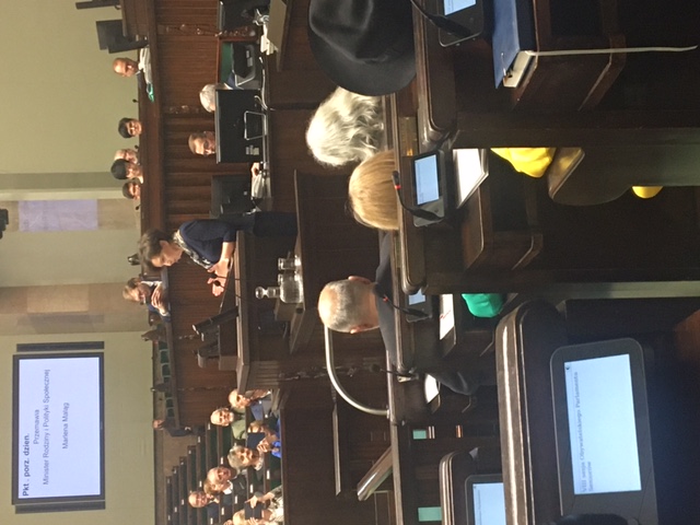 Nie ukrywam, to naprawdę ogromne przeżycie przebywać w miejscu tak znanym i ważnym dla Polaków, zwiedzać gmach sejmu, zasiadać w sejmowych ławach na miejscach lubianych polityków ( nikt nam nie narzucał lokalizacji), podchodzić i uwieczniać na zdjęciach najważniejsze miejsca na sali sejmowej, uczestniczyć w obradach, głosować naciskając odpowiednie przyciski – co na początku nie było takie oczywiste spotykać na sejmowych korytarzach znanych z telewizji posłów, fotografować się z nimi, jeść lunch w Nowym Domu Poselskim. Gmach sejmu dla ludzi z zewnątrz to prawdziwy labirynt, elegancki, przestronny, ale labirynt, gdzie można pobłądzić, a nawet się pogubić , jak pchała ciekawość i wszystko (no prawie wszystko) chciało się zobaczyć.