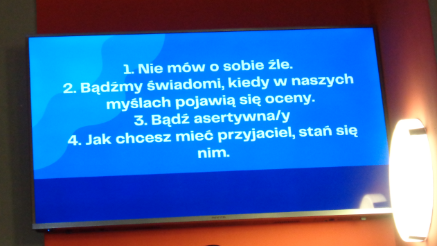 Pani Klaudia podała super receptę na bezkonfliktowe zwrócenie komuś uwagi – zacznij od pozytywu – powiedziała – przejdź do negatywu i potem znowu daj pozytywny przekaz – spróbuj tej metody zwanej ,,kanapką ‘’, ona naprawdę działa.