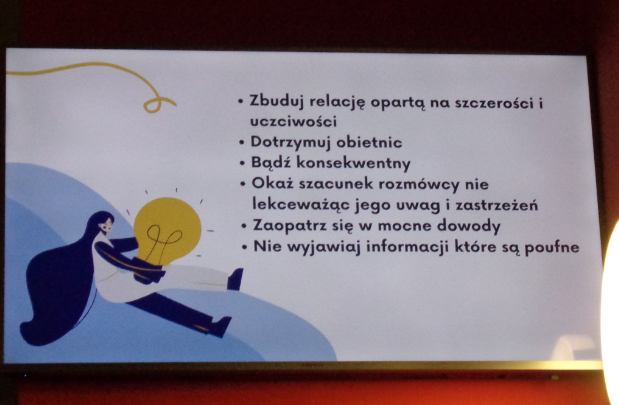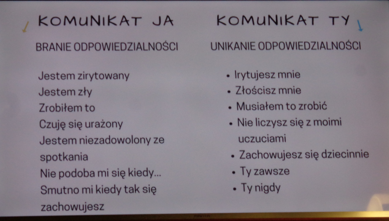 Dziękujemy pani Klaudii Piotrowskiej za mądre słowa, konkretne przykłady, wiele życiowych podpowiedzi pomocnych w kontaktach z otoczeniem. Teraz to tylko od nas zależy jak się ułożą nasze bieżące i przyszłe relacje z otoczeniem.