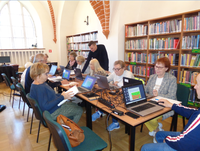 Szkolenie dwóch grup słuchaczy dotyczy nie tylko pracy z komputerem, obejmuje również szerokie korzystanie ze smart fonów, które do łatwych nie należy, a wypada … umieć. Ta część szkolenia przyciągnęła najwięcej kursantów.