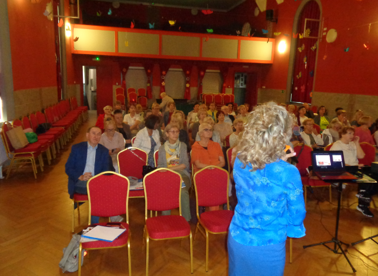 Przykładem na cudowny relaks i pobudzenie naszych mięśni była ulubiona gimnastyka, prowadzona w dwóch grupach przez dr KINGĘ MICHNIK. Każdy mięsień musiał słuchać nas , a nie – jak zwykle – na odwrót, ćwiczenia niby delikatnie, niby subtelne spełniły w 100% nasze oczekiwania. Dziękujemy obu paniom za miłe spotkanie i twórczo spędzony czas. Do zobaczenia!