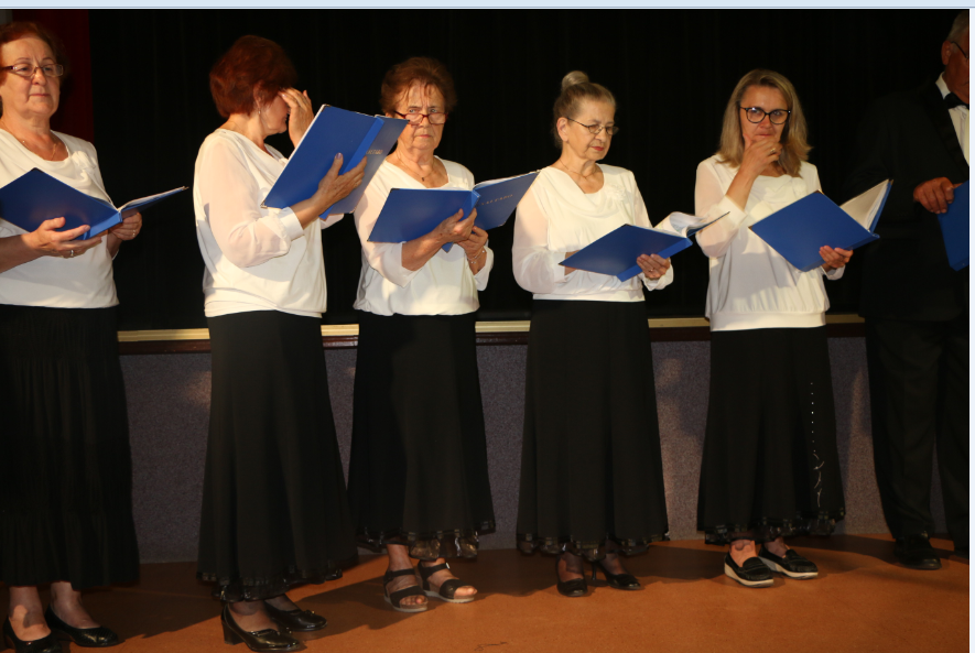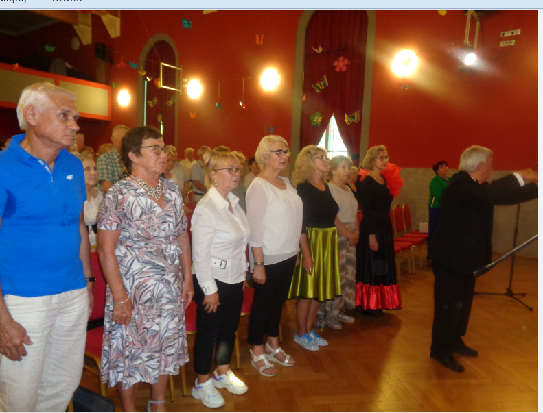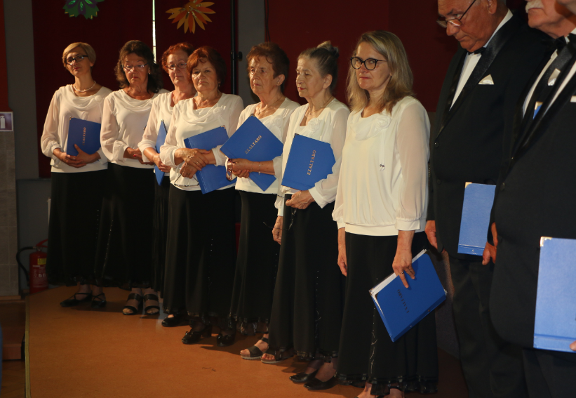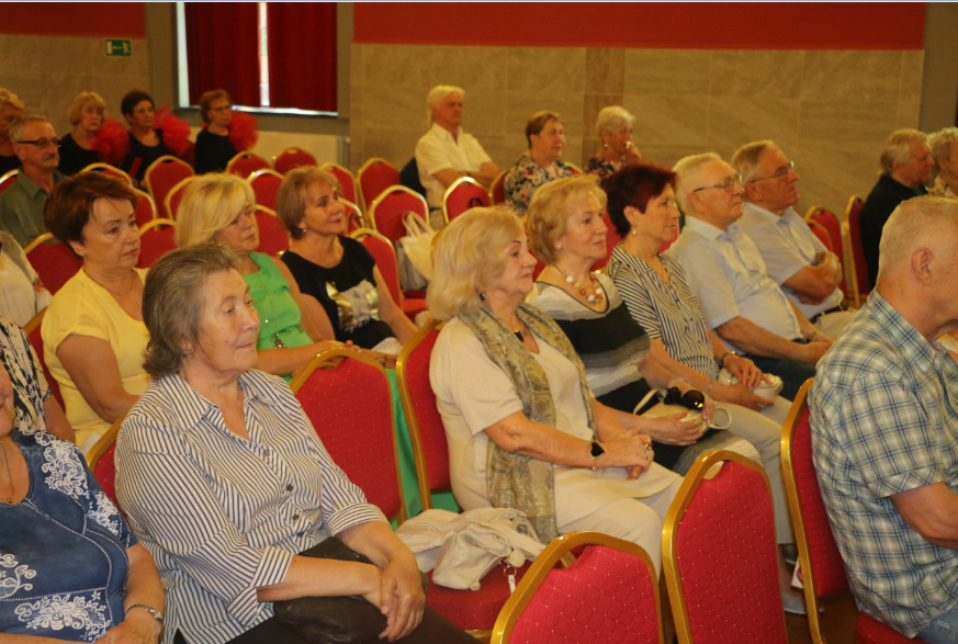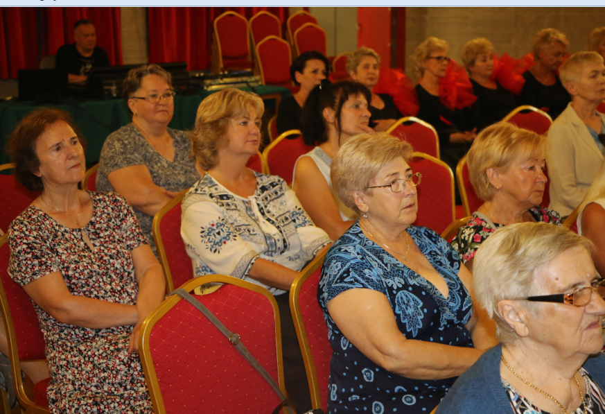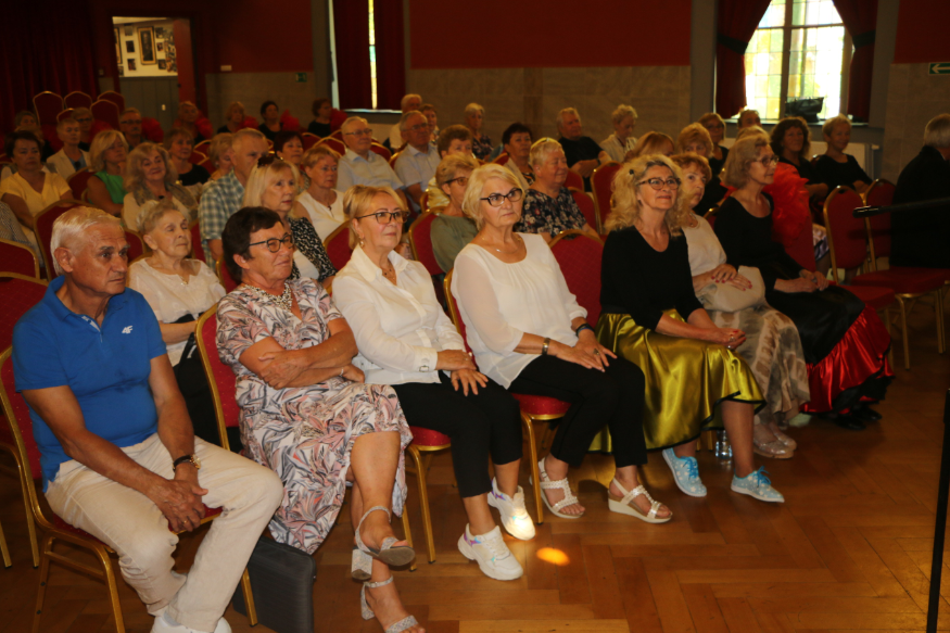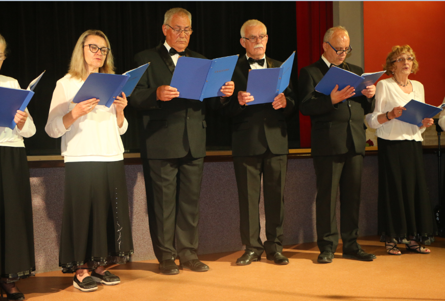 Krótką część artystyczną rozpoczął żywiołowy rock and roll ,,Szalone niebieskie buciki”, który – na scenie – przedstawił zespół gimnastyczno – taneczny MyśliDorki prowadzony przez DOROTĘ LASTOWSKĄ – CHOŁOCIŃSKĄ. Widać, że naszym koleżankom werwy nie brakuje, a taniec zatrzymał przy nich na dłużej młodość i radość życia! Stroje też was odmłodziły!