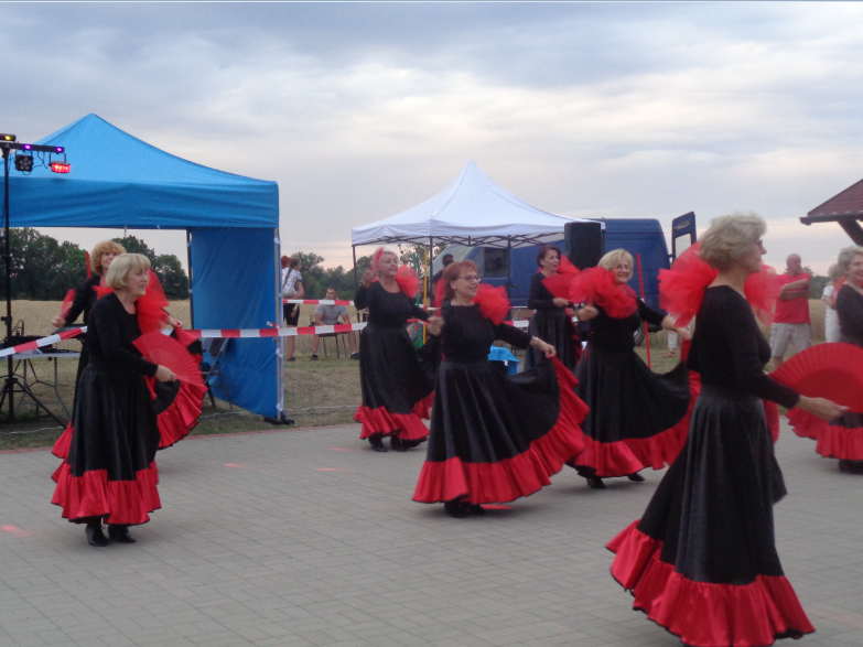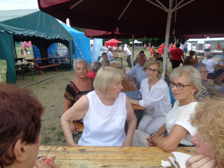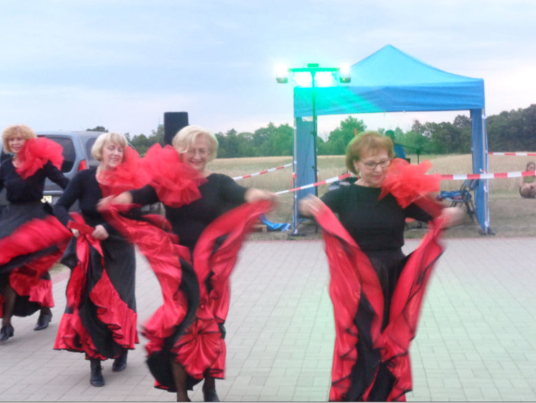 Humorystycznie można powiedzieć tak … po pierwsze – STWÓRCA (żar z nieba to Jego zasługa), po drugie MACIEJ PATYNOWSKI i JUSTYNA BARANOWICZ główni organizatorzy tego super spotkania w plenerze, po trzecie zespół taneczny BABYLON z Myśliborskiego Uniwersytetu Trzeciego Wieku, ze swoją choreografką i trenerką KRYSTYNĄ MATUSZAK . Tu naprawdę czułyśmy, że 15. VII. 2023 roku MOC BYŁA Z NAMI!