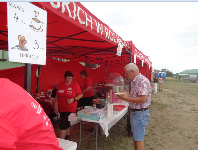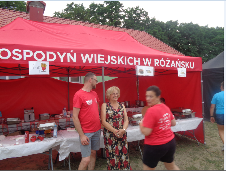 Zdajemy sobie sprawę jak ogromnym wyzwaniem jest całodobowa koordynacja działań 40 KÓŁ GOSPODYŃ WIEJSKICH z terenu naszego województwa, 30 stoisk z atrakcyjnymi artystycznymi i domowymi wyrobami, wypiekami, darami natury, z ich sensownym rozmieszczeniem na placu, zapewnienie rozgrywek i rozrywek dla przybyłych , w różnym wieku gości i dodatkowo zaplanowanie występu zespołu BABYLON w trakcie zabawy tanecznej pod chmurką. To wszystko, na medal, ogarnął MACIEJ PATYNOWSKI – Prezes POLSKIEJ FUNDACJI SPOŁECZEŃSTWA PRZEDSIĘBIORCZEGO z grupą równie sobie energicznych pasjonatów. Z kronikarskiego obowiązku musimy odnotować, że ta piękna impreza miała i ojca – wyżej wymienianego pana MACIEJA i wyjątkowo obrotną matkę – wcześniej wspominaną panią JUSTYNĘ BARANOWICZ – Wiceprzewodniczącą KGW oraz sołtysową Różańska w jednym. Brawo!