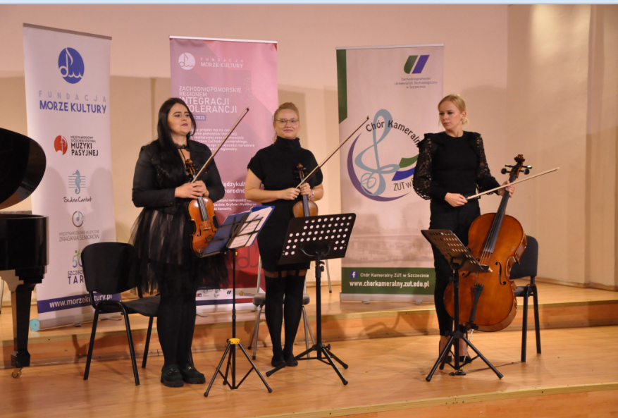 Naukowo udowodniono, że muzyka jest jednym ze sposobów walki z depresją. W ramach cudownej terapii zaordynowano słuchaczom kojąco brzmiące pieśni chóru BARWY, krótki recital fortepianowy DOMINIKA FRANCZUKA – wykładowcy Akademii Sztuki w Szczecinie oraz nastrojowy koncert smyczkowy. Nie można było sobie wyobrazić lepszego doboru utworów ponad te, które przedstawiło trio smyczkowe ze Szczecina.