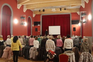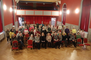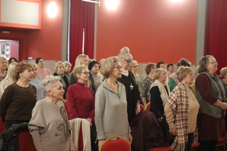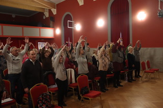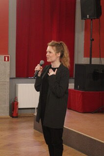 – Doświadczyłam na sobie uzdrawiającej mocy wydawania dźwięków – powiedziała na zakończenie p. Joanna Lenart. Podała niewiarygodne wprost przykłady, co sobie przez lata sama wyśpiewała, a że potrafi śpiewać przekonano się wsłuchując się w pieśń WERBOWAJA DOSZCZECZKA , którą brawurowo, a cappella, z ogromną energią, mimo przejściowych kłopotów z głosem wykonała pani Joanna. Brawo!