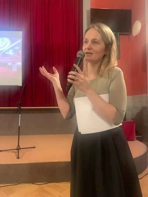 Spieszymy donieść, że mamy kolejną sympatyczną znajomą, naszą wykładowczynię – panią MAGDALENĘ BOŻEK – z twarzy której emanowała wprost miłość do macierzystego teatru, a wiedza o jego historii i dokonaniach na przestrzeni lat, zachwyciła każdego z nas.