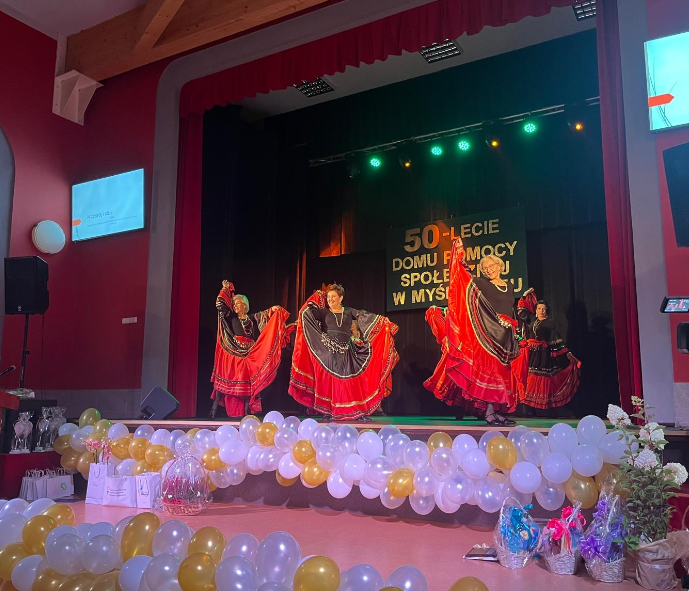 Zaproszony na galę Zespół Tańca Terapeutycznego BABYLON działający przy MYŚLIBORSKIM UNIWERSYTECIE TRZECIEGO WIEKU, pod kierunkiem Krystyny Matuszak zadedykował swoje 4 popisowe układy taneczne mieszkańcom DPS, jego pracownikom i dyrekcji z życzeniami dalszych sukcesów i niesłabnącej energii oraz kolejnych dobrych pomysłów na rzecz uszczęśliwiana ludzi, którzy tu, po latach, znaleźli spokój, ciepło, bezpieczeństwo i potrzebną na starość opiekę.