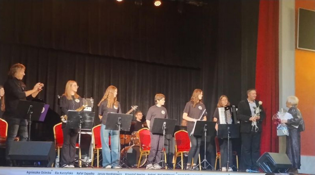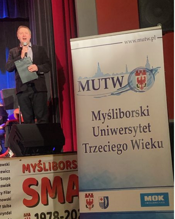 Zaproszenie na naszą uroczystość przyjął także zespół instrumentalny HERMES, działający przy PAŃSTWOWEJ SZKOLE MUZYCZNEJ I STOPNIA , kierowany i założony przez znanego myśliborskiego muzyka ANDRZEJA WACHOWICZA. Przez pół godziny, która minęła nam za szybko, przenieśliśmy się w lata 80-te, lata naszej młodości, która też minęła nam za szybko i za sprawą przebojów z tamtych czasów przeżywaliśmy bezpowrotnie minione lata. Słowo wiążące, z wielką klasą, poprowadził znany konferansjer, muzyk, nauczyciel PSM w Myśliborzu p. MICHAŁ GRABOWSKI. Zachwyciło nas wszystko. Brawo zespół HERMES, brawo młodzi instrumentaliści, brawo panie ANDRZEJU, mogę śmiało zapewnić, że macie kolejnych fanów w naszym MUTW. Po takim występie wiemy, że świat stoi przed wami otworem. Dziękujemy! Osobne podziękowania kierujemy do pani AGATY MYSZAK Dyrektor Państwowej Szkoły Muzycznej.