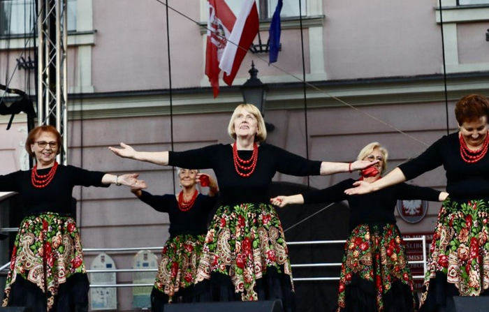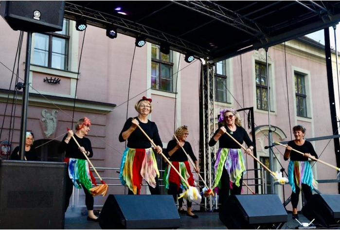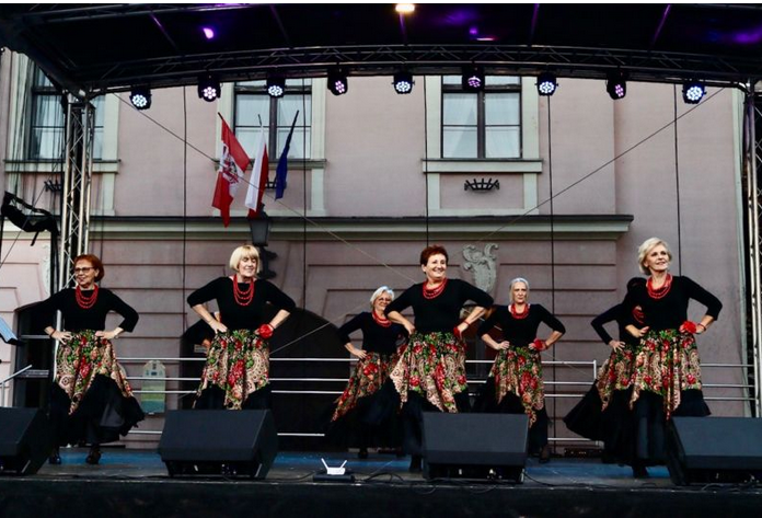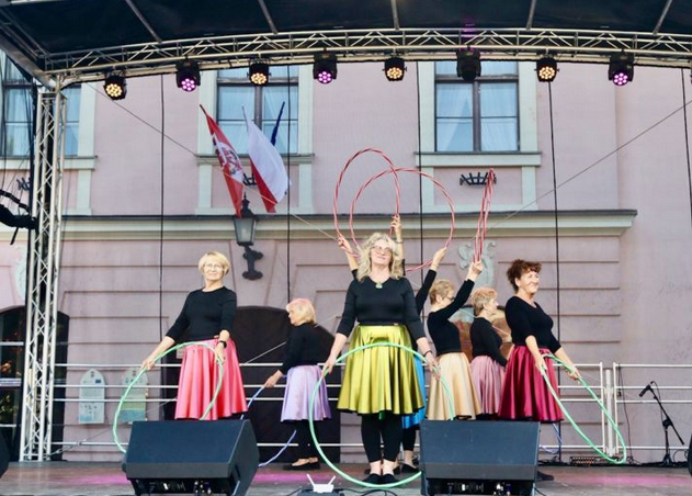 Swoje artystyczne umiejętności prezentowały zespoły, które ogląda się z prawdziwą przyjemnością. Kolejny raz była okazja podziwiać RETRO BAND z Myśliborza w utworach sprzed lat chwytających za serce. Zaprzyjaźniony z nami zespół wokalny AD HOC z Gryfina przyjechał ze znanym i lubianym repertuarem, który został szybko podchwycony przez widzów i wspólnie śpiewany, zespół cygański ROMANO DROM zachwycał energią i pięknymi strojami, zespół gimnastyczny MyśliDorki z MYŚLIBORSKIEGO UNIWERSYTETU TRZECIEGO WIEKU pokazał 2 swoje układy , oba zostały z gracją i bezbłędnie wykonane nad czym czuwała trenerka zespołu DOROTA LASTOWSKA – CHOŁOCIŃSKA , no – i co ośmielam się mocno zaakcentować – wystąpił reprezentacyjny zespół taneczny BABYLON ,który rozsławia nasz uniwersytet i nasze miasto poprzez występy na wielu scenach Polski. Piękne stroje i piękne tańce , co wielokrotnie ze wszystkich stron podkreślano, nie dadzą się szybko wymazać z pamięci. Szczególnie nocny taniec z ledowymi rekwizytami, przeniósł widzów w baśniowy klimat – o czym usłyszałam od paru osób schodząc ze sceny. Przypominam, że zespół BABYLON, z sukcesem, prowadzi KRYSTYNA MATUSZAK. Dziękujemy za zaproszenie! Miło było wystąpić w gronie zacnych wykonawców.