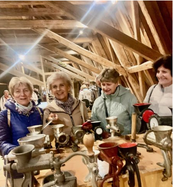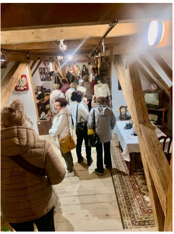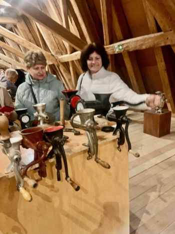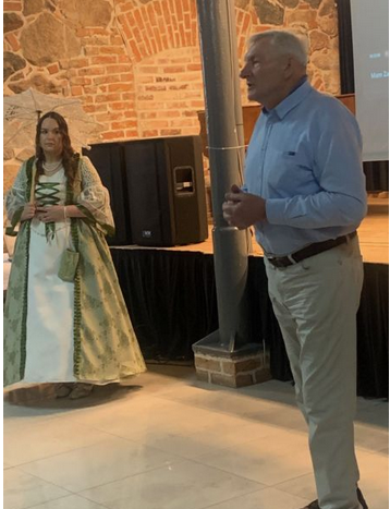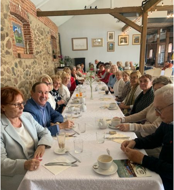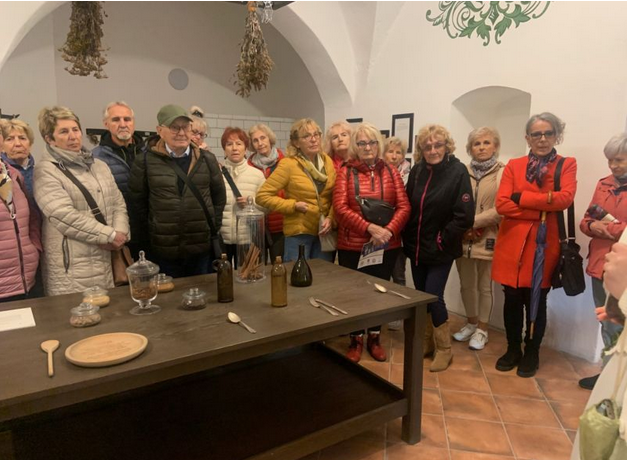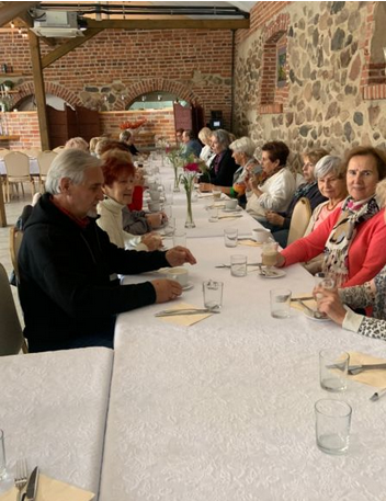 W programie ,oprócz zwiedzania niesamowitych wnętrz  pałacowych oraz  przybliżenia ich bogatej historii, o której opowiadał nie tylko właściciel obiektu ZDZISŁAW ANDZIAK , ale także film dokumentalny i przewodniczka MAGDA OLEJNICZAK –  Biała Dama, zwiedzano muzeum z unikatowymi, wyjątkowo interesującymi  zbiorami, które zajmują kilka pomieszczeń od piwnicy po wysoki strych – co koniecznie trzeba zobaczyć.  Zapoznano się także z elegancką bazą noclegową, salą konferencyjną, zabytkowym parkiem z aleją grabową, kamiennym labiryntem, miejscem do uprawiania mini – golfa, wystawą zabytkowych maszyn rolniczych. Autentycznie zachwycano się odrestaurowanymi i nowocześnie urządzonymi zabudowaniami folwarcznymi z klimatyczną salą restauracyjną, do której zaproszono nas na obiad z tradycyjnym daniem kuchni polskiej w roli głównej.