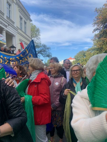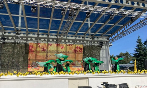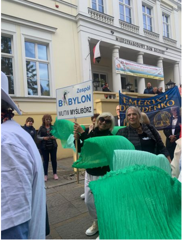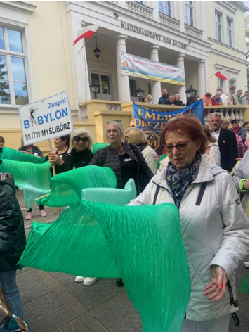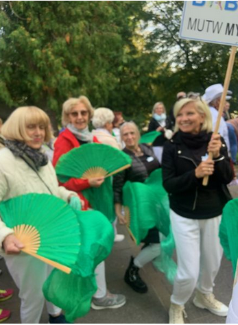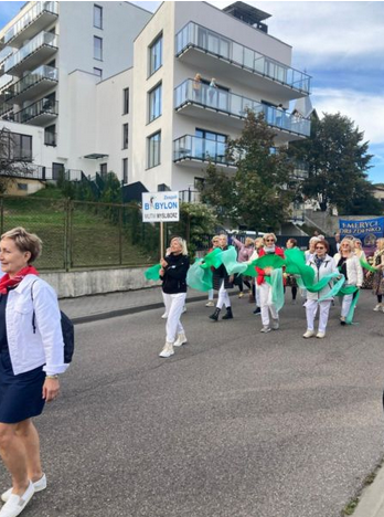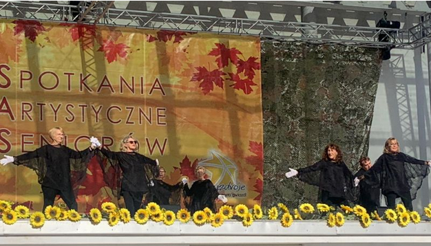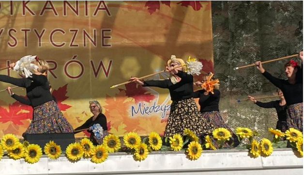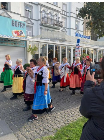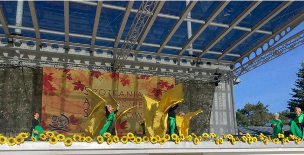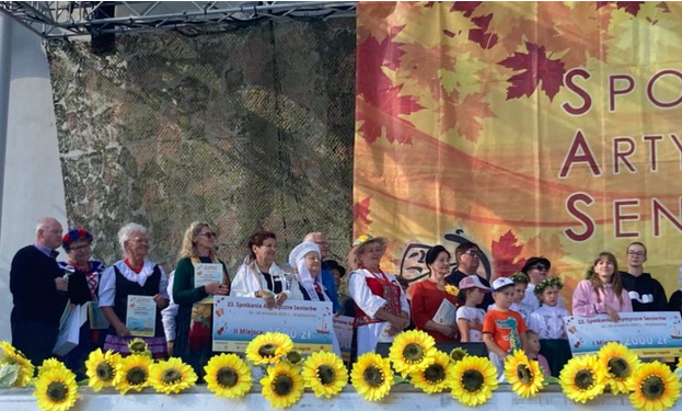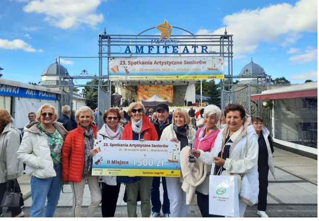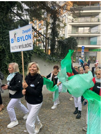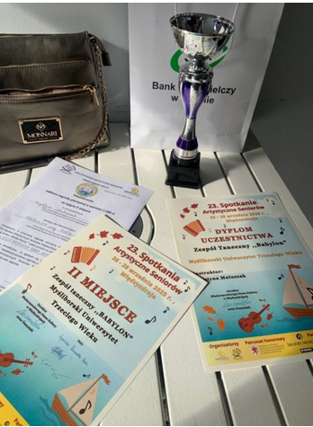 Oba zespoły, w dniach 26- 28. IX. 2025 roku, reprezentowały MYŚLIBORSKI UNIWERSYTET TRZECIEGO WIEKU na 23 ARTYSTYCZNYCH SPOTKANIACH SENIORÓW, na które, w tym roku, przyjechało 45 zespołów z całej Polski. Zaznaczmy, że przez dużą plenerową scenę ustawioną przy promenadzie przewinęło się w ciągu tych 3 dni ponad 450 artystów – amatorów. Na widowni komplet widzów, bo było co podziwiać. Zachwycały kapele ludowe, zespoły śpiewacze i zespoły taneczne. Podziwiano energię, barwne, bogate stroje, wymyślną choreografię, zgranie zespołów i ludowe zaśpiewy, które zawsze chwytają za serce. Z kronikarskiego obowiązku odnotujmy bardzo wysoki poziom prezentacji, w co wpisały się znakomicie nasze MyśliDorki z dopracowanymi na 102 swoimi dwoma układami gimnastycznymi oraz zespół BABYLON . Nic zatem dziwnego, że oba zebrały zasłużone oklaski.