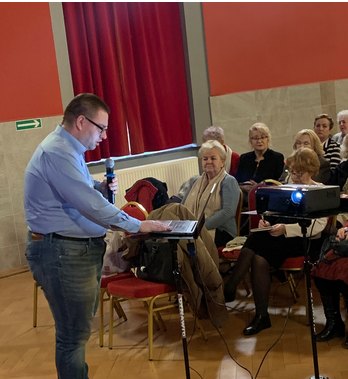 A niespodzianek jest sporo! I właśnie przed nimi przestrzegał nas wykładowca – informatyk GRZEGORZ REMISZEWSKI. Co nas może zaskoczyć? Złośliwe oprogramowanie, wirus, podszywanie się pod ciebie, kradzież twoich poufnych danych, śledzenie, internetowy hejt, fałszywe sklepy internetowe, upublicznienie prywatnych zdjęć i wiadomości, wyłudzanie danych do bankowości, wszelkiej maści oszustwa np.,, na montera”, ,,na amerykańskiego żołnierza”, ,,na policjanta”, niedopłaconą przesyłkę, na BLIK, na 14 emeryturę , na dofinansowanie na Brada Pitta … Ostatnimi czasy ogromne wyzwanie stanowi sztuczna inteligencja, a nas gubi, jak zwykle, niewiedza, brawura i nadmierna wiara w odporność na zagrożenia.