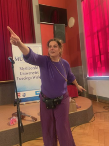 W rubryce – zawód – Joanna Lewandowska pisze artystka lub klaun medyczny, a moim zdaniem powinna jeszcze dopisać Anioł Stróż i wtedy byłby to prawie komplet cech , którymi emanowała nasza wykładowczyni 8.XII. 25 roku, w dniu naszego spotkania. Z kronikarskiego obowiązku odnotować należy, że to spotkanie odbyło się dzięki projektowi Aktywni w każdym wieku dofinansowanemu ze środków rządowego programu wieloletniego na rzecz Osób Starszych ,,Aktywni +” edycja 2025